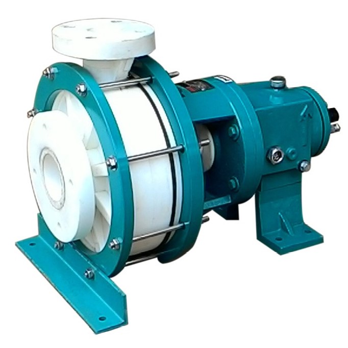Magnetic Drive pumps in PP & PVDF construction. These pumps are 100% Leak Proof and ideally suitable for handling corrosive chemicals, toxic and fuming liquids, acids, electroplating chemicals, dyes, solvents, petrol, kerosene, pharmaceutical and food syrups etc. These pumps are 100% Leak Proof Magnetic Drive pumps. There is no shaft seal used and the impeller is provided the rotation with the help of Magnetic drive.